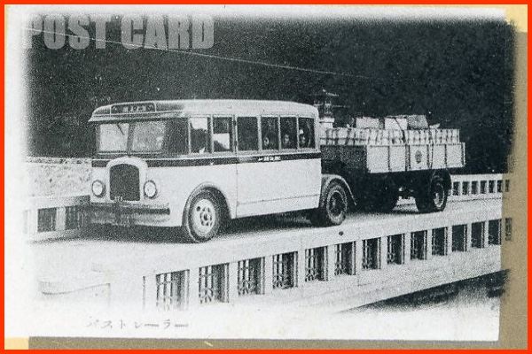 省営バスが地方で小荷物を輸送するために導入したと思われるバストレーラー。先頭のキャブは客室を兼ね、トラクター部分が荷物専用になっています。ちよだST型(1935年製)。(注1)