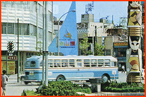 岡山市に1949年に作られたセントラル・バス・ステーション(現在の天満屋バスセンター)に集うバス。
